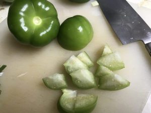 - Slice all tomatoes (red and green) thin. We want them to dissolve into the soup by the end of the cooking time.