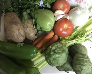 3 carrots 2-3 celery stalks 1 onion 1 chayote squash 4 green chiles 1lb green tomatoes (tomatillos) 2 medium tomatoes ½ bunch of cilantro |